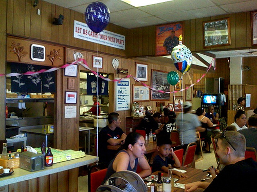 Meetup at Hank's Haute Dogs. Niimo orders. The friendly cashier,