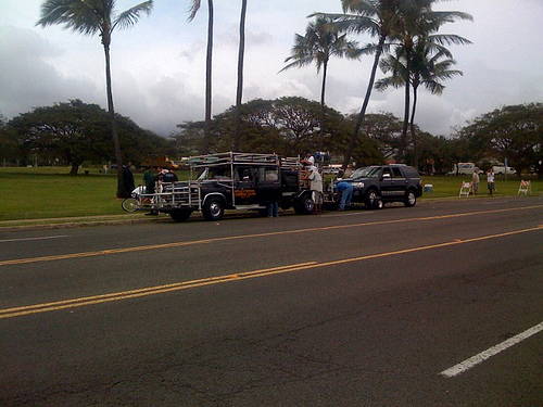 Cars parked four blocks from the caucus site in Mililani. Sent from my